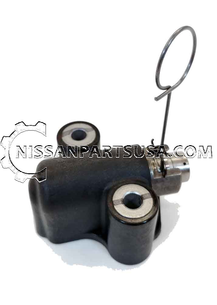 Your Nissan's timing chain ensures the valves on the engine close and open at the proper intervals. The timing chain must have the right amount of tension to keep the crankshaft and camshaft rotations synchronized and the engine valves opening and closing at the correct intervals. The Engine Timing Chain Tensioner ensures the timing chain in your Nissan Maintains the correct tension level to keep your engine operating as it should. Eventually, your vehicle's timing chain can loosen. The Engine Timing Chain Tensioner is there to make sure the timing chain stays in place and under the appropriate amount of pressure, even if any stretching occurs. If the Engine Timing Chain Tensioner on your vehicle is broken or worn out, the timing chain could lose tension and fall out of place. This could cause the timing chain to break if the vehicle is running when it happens. If the timing chain isn't functioning, the valves and pistons can collide, and your Nissan's engine will be unable to run. One obvious sign of an Engine Timing Chain Tensioner that needs to be replaced is a rattling sound coming From under the hood. A metal-on-metal sounding rattle could signify that your timing chain has lost tension and might be worn out. Over time, a rattling loose timing chain can lead to other issues, such as oil leaks. If you believe your Engine Timing Chain Tensioner is damaged or worn out, it's important to have a professional Nissan technician inspect and repair or replace the tensioner, as it can be a difficult process accessing the Engine Timing Chain Tensioner. If you need to replace your Engine Timing Chain Tensioner, replace it w/ a new OEM replacement tensioner From Nissan Parts. Find your closest authorized Nissan service center for help w/ professional installation. This Engine Timing Chain Tensioner fits your Nissan Frontier 2005-2019, Nissan NV1500 2012-2020, Nissan NV2500 2012-2020, Nissan NV3500 2012-2020, Nissan Pathfinder 2005-2012, or Nissan Xterra 2005-2015. See the What This Fits tab for more details. Xterra. Adjuster. Crank To Cam. Primary chain. Nv Full size Van.